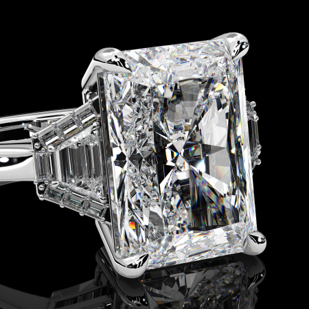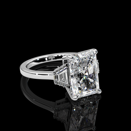 5.5 carat Three Stone Radiant cut Ring with Trapezoid Side Stones