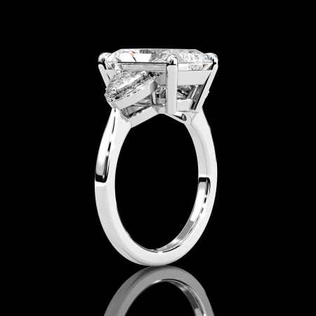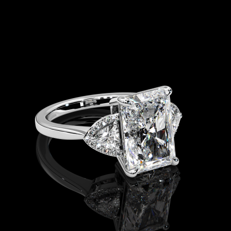 5.5 carat Three Stone Radiant cut Diamond Ring with Trillion cut Side Stones