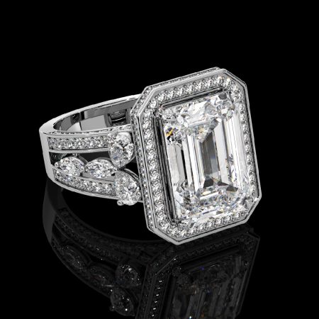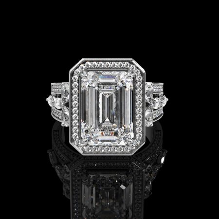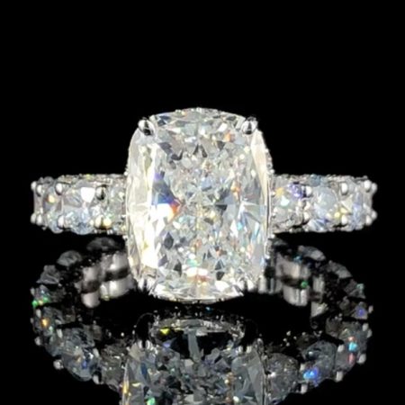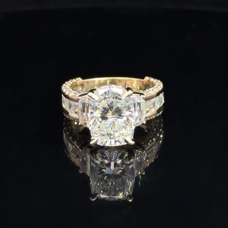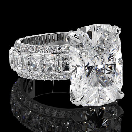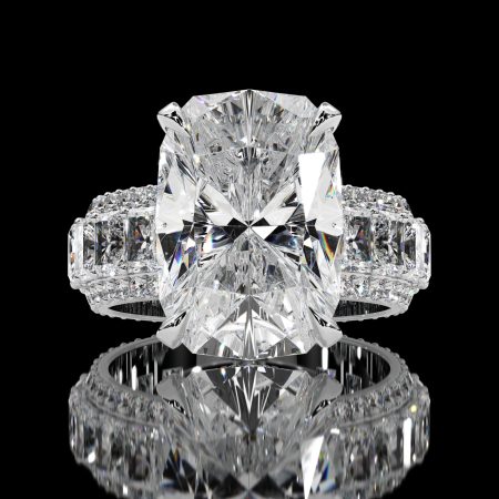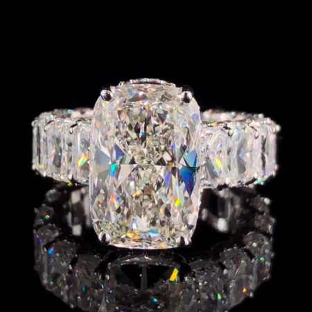 8.5 carat Elongated Cushion cut Diamond Ring with Radiant cut Side Stones