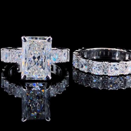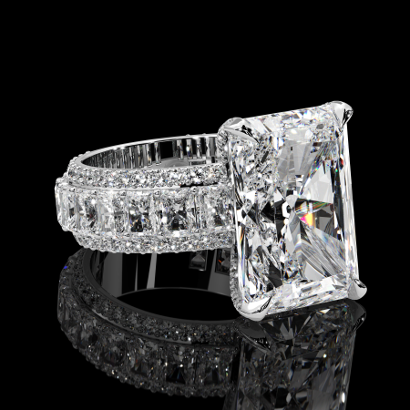 9.5 carat Radiant cut Diamond Ring with Radiant cut Side Stones