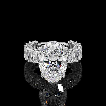 8.5 carat Oval Diamond Ring with Radiant cut Side Diamonds