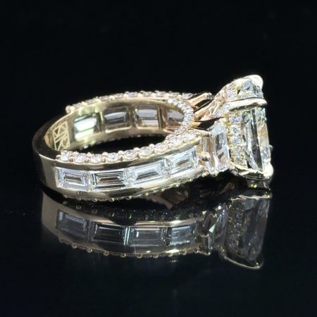 8 ct Elongated Cushion cut with Baguettes Diamond Ring